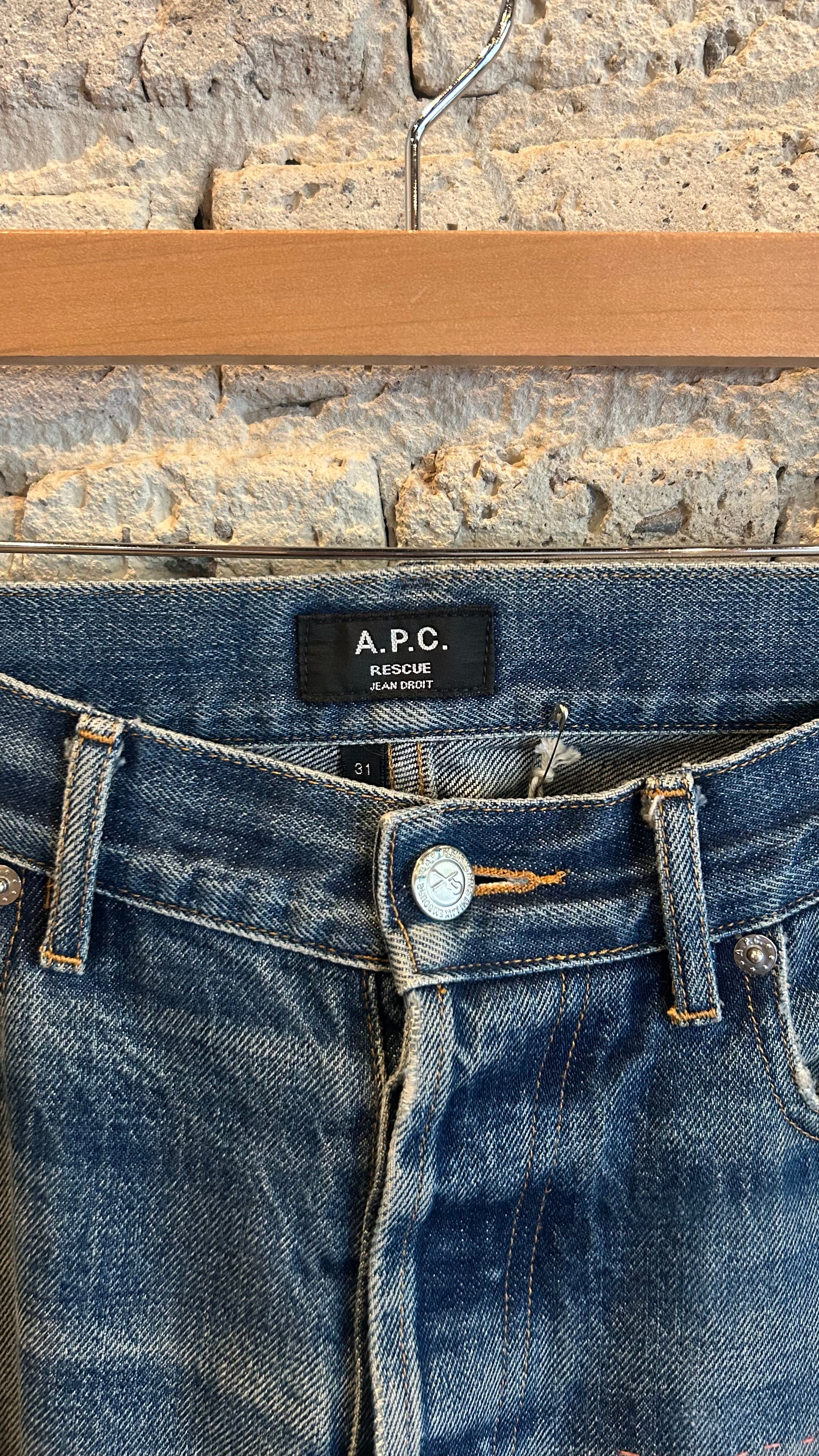 -70%2000's APC Thrashed and Repaired Rescue Fit Selvedged Jean in Aged Blue—