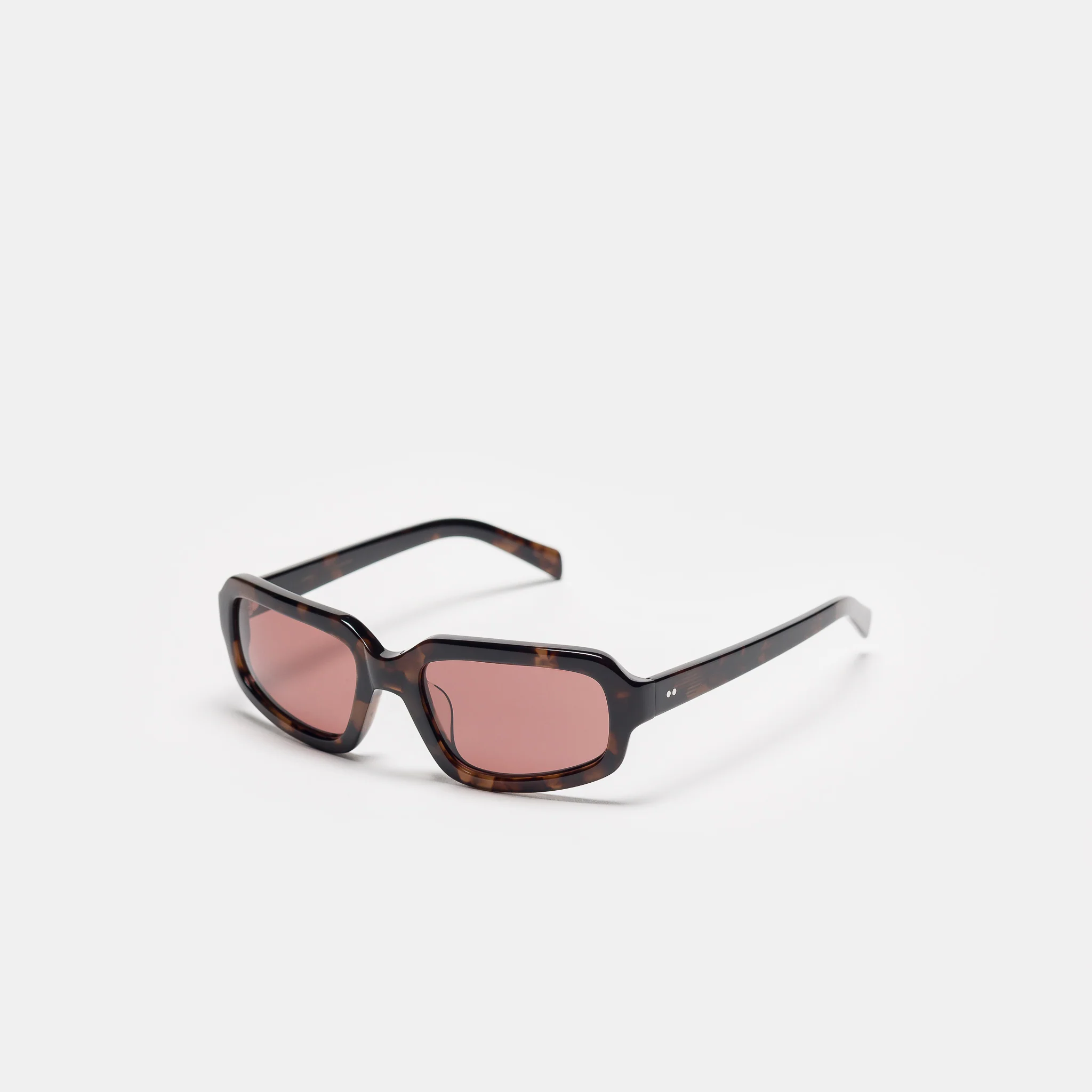 Akila jupiter sunglasses in tortoise/purple. Featuring custom metallic temple cores, acetate frame, and purple tinted lenses.